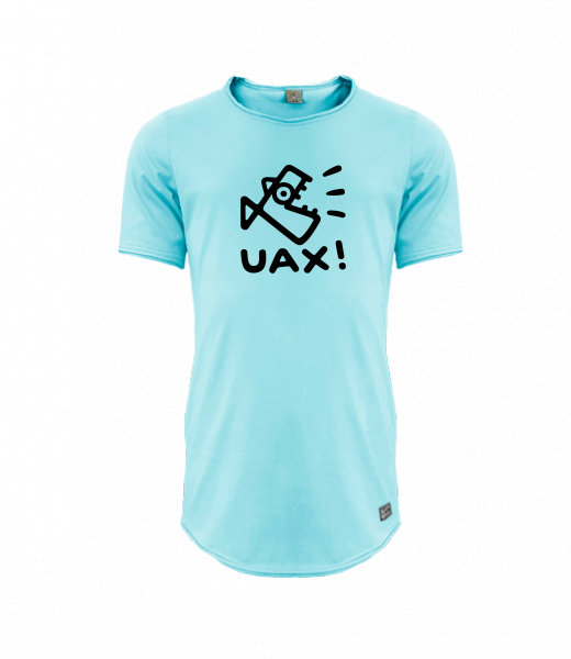 Mens T-SHIRT UAX PARKOUR LONG for man with design 1364 LOGO UAX! 2023 in color PASTEL BLUE