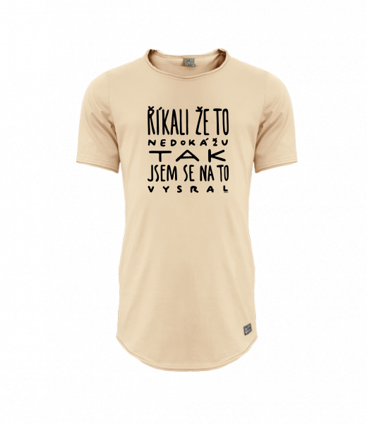 Mens T-SHIRT UAX PARKOUR LONG for man with design 1366 ŘÍKALI ŽE TO NEDOKÁŽU TAK JSEM SE NA TO VYSRAL in color CARAMEL