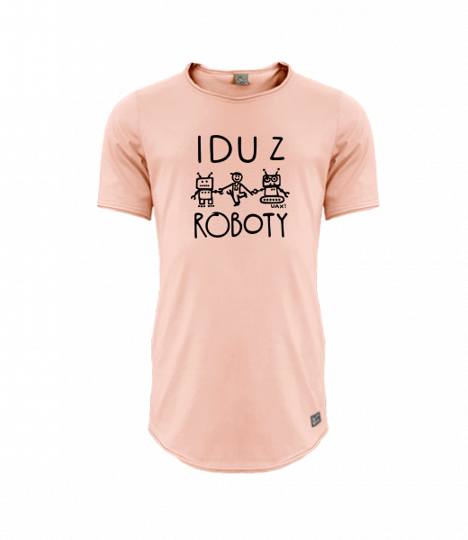Mens T-SHIRT UAX PARKOUR LONG for man with design 1377 IDU Z ROBOTY 2 in color PEACH