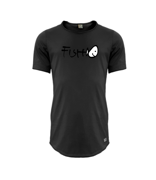 Mens T-SHIRT UAX PARKOUR LONG for man with design 357 FISH in color BLACK