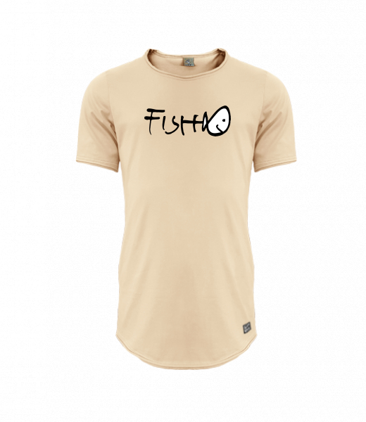 Mens T-SHIRT UAX PARKOUR LONG for man with design 357 FISH in color CARAMEL