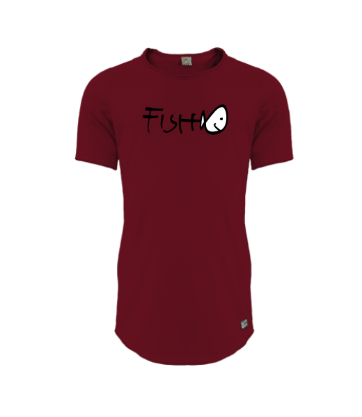 Mens T-SHIRT UAX PARKOUR LONG for man with design 357 FISH in color DARK RED