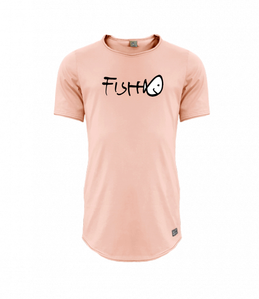 Mens T-SHIRT UAX PARKOUR LONG for man with design 357 FISH in color PEACH