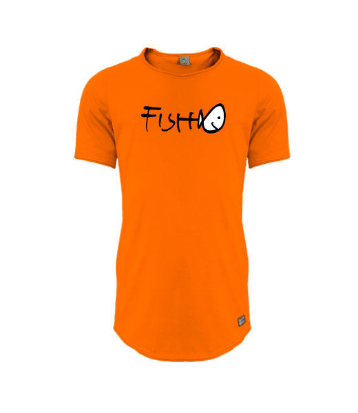 Mens T-SHIRT UAX PARKOUR LONG for man with design 357 FISH in color SIGNAL ORANGE