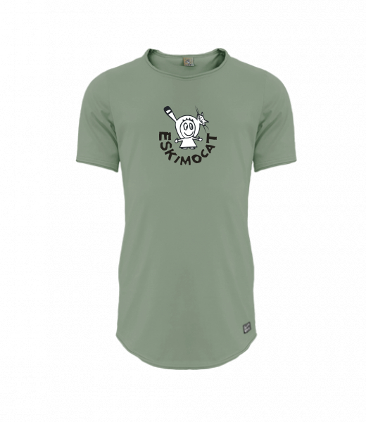 Mens T-SHIRT UAX PARKOUR LONG for man with design 375 ESKIMOCAT in color OLIVA