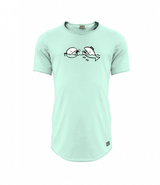 Mens T-SHIRT UAX PARKOUR LONG for man with design 385 FISH TAXI in color MINT