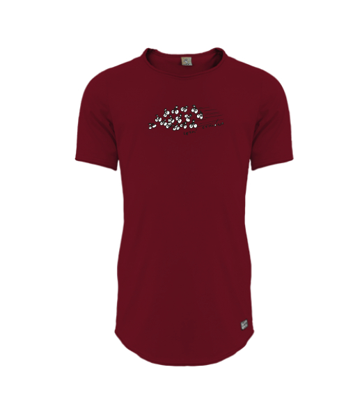 Mens T-SHIRT UAX PARKOUR LONG for man with design 505 LETNI CYKLONA in color DARK RED