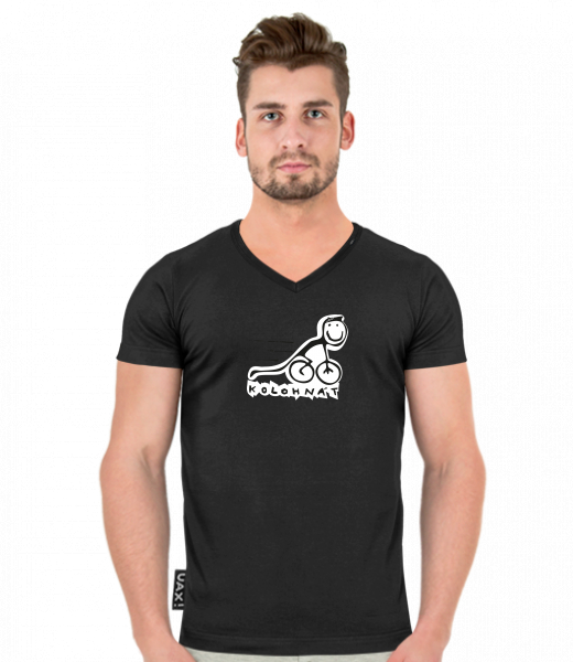 Men's T-shirt SLIM FIT with V nec for man with design 1007 KOLO HNAT in color BLACK