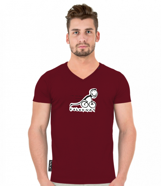 Men's T-shirt SLIM FIT with V nec for man with design 1007 KOLO HNAT in color DARK RED