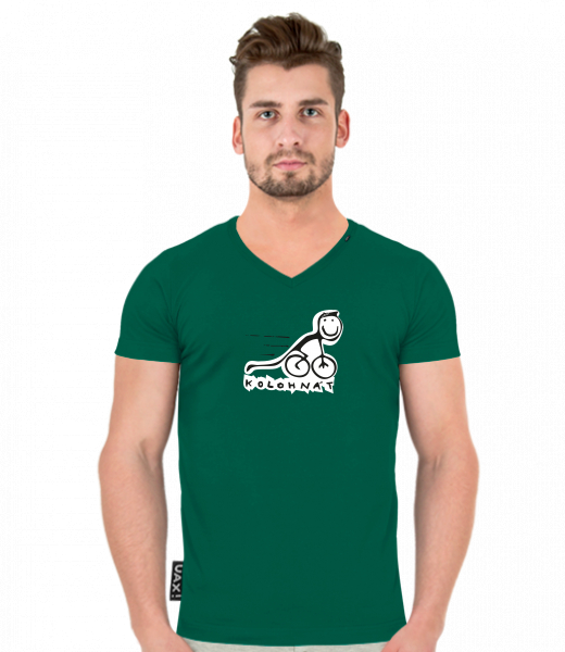 Men's T-shirt SLIM FIT with V nec for man with design 1007 KOLO HNAT in color UNIVERSITY GREEN