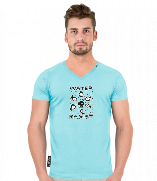 Men's T-shirt SLIM FIT with V nec for man with design 1021 WATER RASIST in color PASTEL BLUE