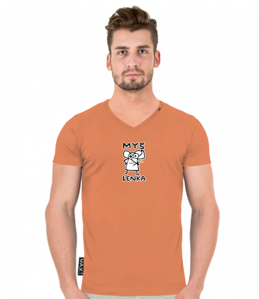 We make sustainable UAX clothing! - hand sewn in the Czech Republic uaxMen uaxAll productsT-shirtsT-SHIRTS SLIM FIT V NECKdesign 1038 - MYŠ LENKAMANDARIAN ORANGE