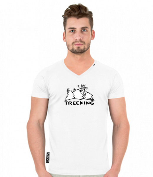 Men's T-shirt SLIM FIT with V nec for man with design 1044 TREKING in color WHITE