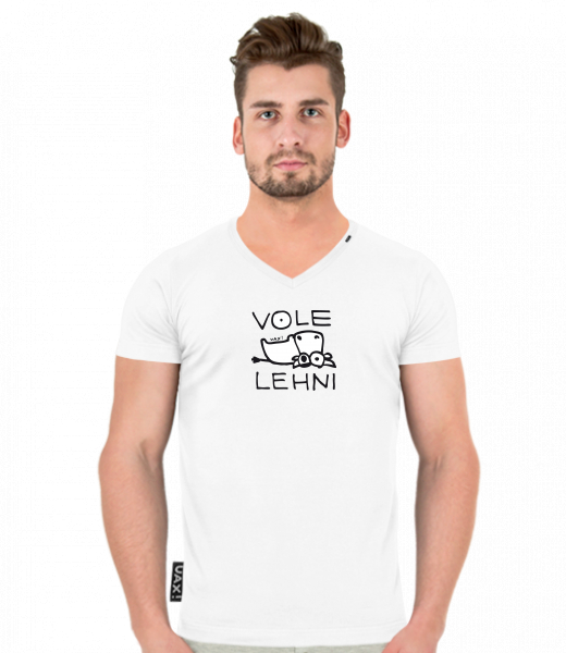 We make sustainable UAX clothing! - hand sewn in the Czech Republic uaxMen uaxAll productsT-shirtsT-SHIRTS SLIM FIT V NECKdesign 1045 - VOLE LEHNIWHITE