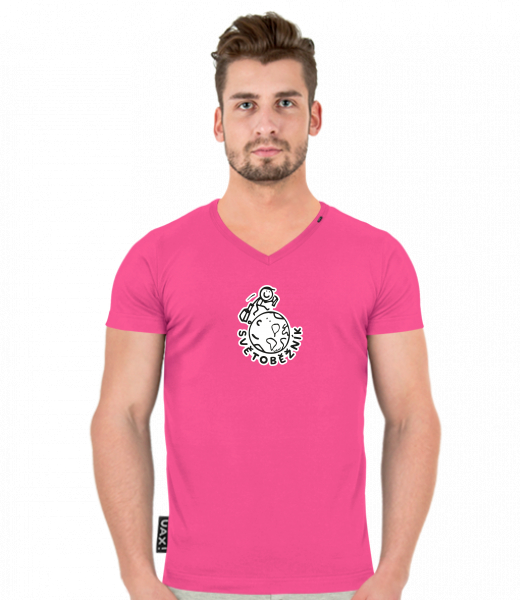 Men's T-shirt SLIM FIT with V nec for man with design 1047 SVĚTOBĚŽNÍK in color INDIAN LILA