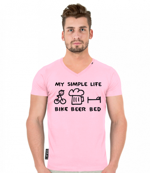 We make sustainable UAX clothing! - hand sewn in the Czech Republic uaxMen uaxAll productsT-shirtsT-SHIRTS SLIM FIT V NECKdesign 1056 - BIKE BEER BEDBABY PINK