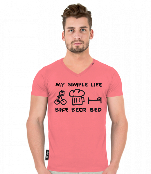 Men's T-shirt SLIM FIT with V nec for man with design 1056 BIKE BEER BED in color LOSOSOVA