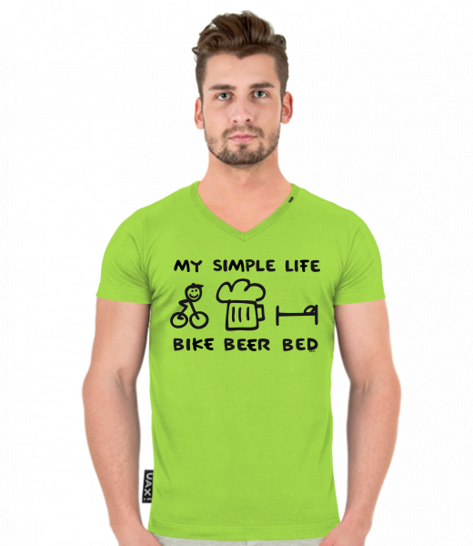 We make sustainable UAX clothing! - hand sewn in the Czech Republic uaxMen uaxAll productsT-shirtsT-SHIRTS SLIM FIT V NECKdesign 1056 - BIKE BEER BEDPARROT GREEN