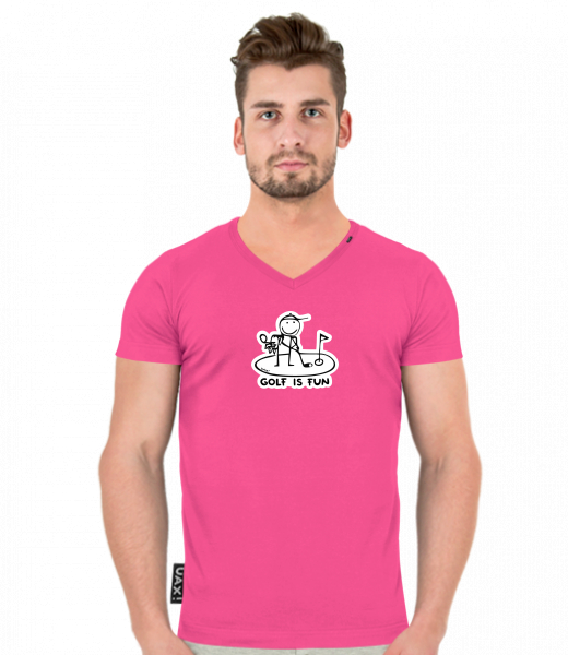We make sustainable UAX clothing! - hand sewn in the Czech Republic uaxMen uaxAll productsT-shirtsT-SHIRTS SLIM FIT V NECKdesign 1057 - GOLF IS FUNINDIAN LILA