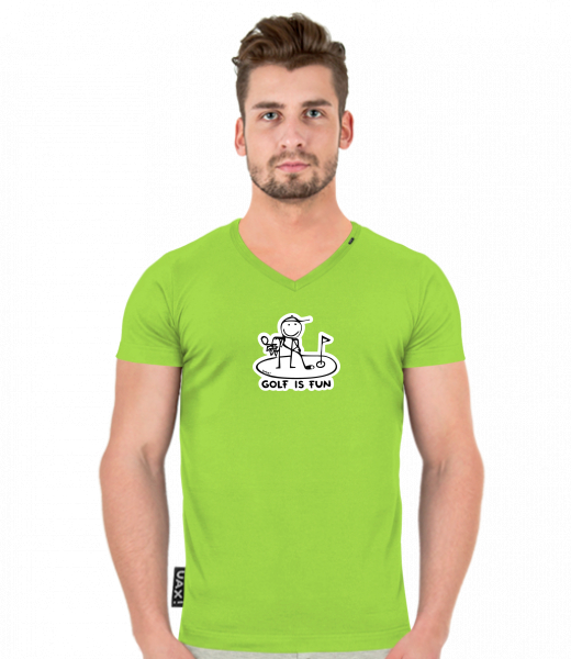 We make sustainable UAX clothing! - hand sewn in the Czech Republic uaxMen uaxAll productsT-shirtsT-SHIRTS SLIM FIT V NECKdesign 1057 - GOLF IS FUNPARROT GREEN