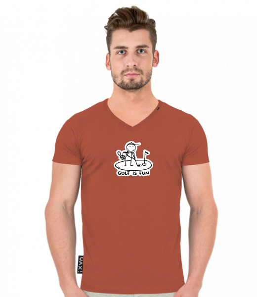 Men's T-shirt SLIM FIT with V nec for man with design 1057 GOLF IS FUN in color TERRA