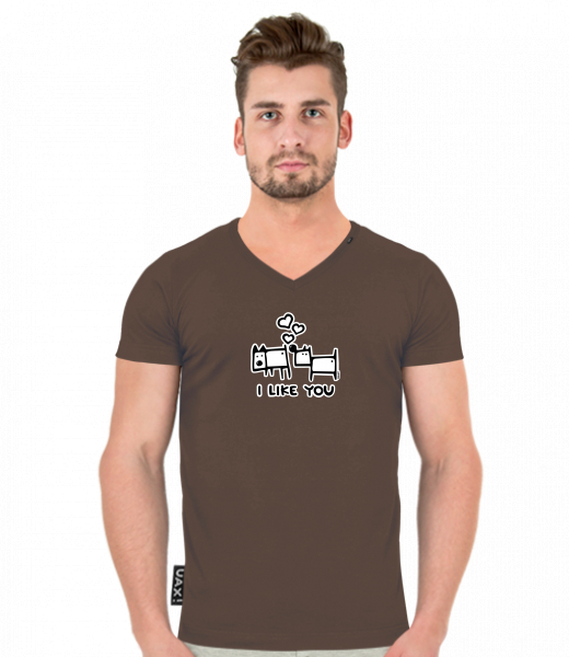 We make sustainable UAX clothing! - hand sewn in the Czech Republic uaxMen uaxAll productsT-shirtsT-SHIRTS SLIM FIT V NECKdesign 1066 - I LIKE YOUCHESTNUT
