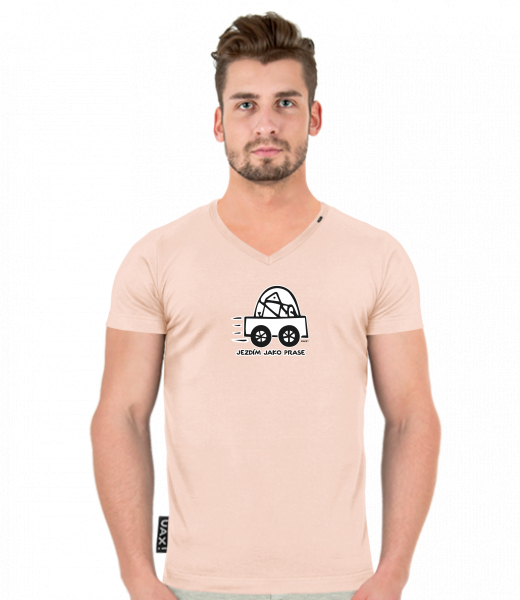 We make sustainable UAX clothing! - hand sewn in the Czech Republic uaxMen uaxAll productsT-shirtsT-SHIRTS SLIM FIT V NECKdesign 1072 - JEZDÍM JAKO PRASECAPPUCINO