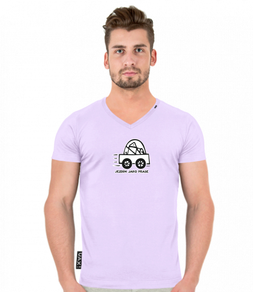 We make sustainable UAX clothing! - hand sewn in the Czech Republic uaxMen uaxAll productsT-shirtsT-SHIRTS SLIM FIT V NECKdesign 1072 - JEZDÍM JAKO PRASELAVENDER