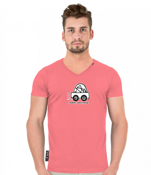 Men's T-shirt SLIM FIT with V nec for man with design 1072 JEZDÍM JAKO PRASE in color LOSOSOVA