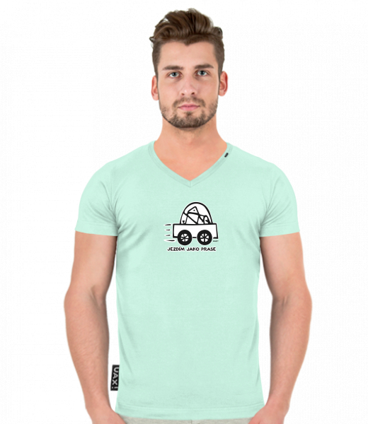 We make sustainable UAX clothing! - hand sewn in the Czech Republic uaxMen uaxAll productsT-shirtsT-SHIRTS SLIM FIT V NECKdesign 1072 - JEZDÍM JAKO PRASEMINT