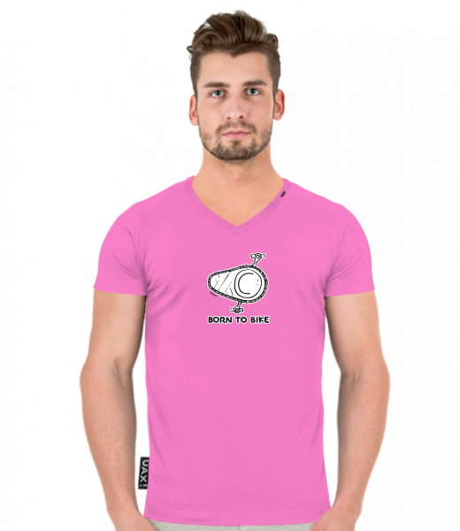 We make sustainable UAX clothing! - hand sewn in the Czech Republic uaxMen uaxAll productsT-shirtsT-SHIRTS SLIM FIT V NECKdesign 1074 - BORN TO BIKECLASSIC PINK