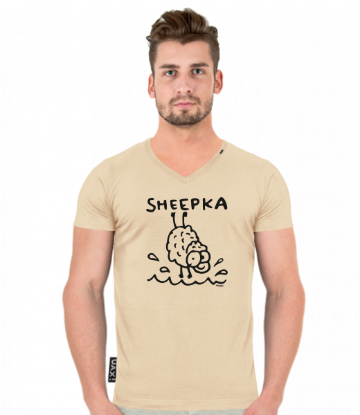 We make sustainable UAX clothing! - hand sewn in the Czech Republic uaxMen uaxAll productsT-shirtsT-SHIRTS SLIM FIT V NECKdesign 1077 - SHEEPKACARAMEL