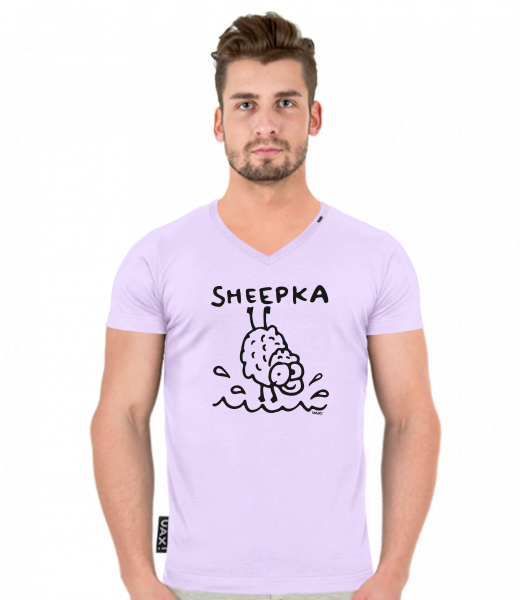 We make sustainable UAX clothing! - hand sewn in the Czech Republic uaxMen uaxAll productsT-shirtsT-SHIRTS SLIM FIT V NECKdesign 1077 - SHEEPKALAVENDER
