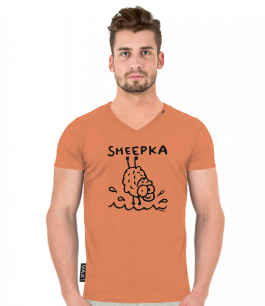 We make sustainable UAX clothing! - hand sewn in the Czech Republic uaxMen uaxAll productsT-shirtsT-SHIRTS SLIM FIT V NECKdesign 1077 - SHEEPKAMANDARIAN ORANGE