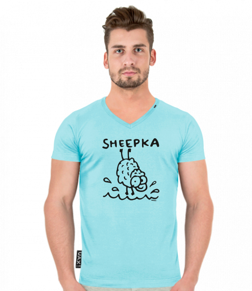 We make sustainable UAX clothing! - hand sewn in the Czech Republic uaxMen uaxAll productsT-shirtsT-SHIRTS SLIM FIT V NECKdesign 1077 - SHEEPKAPASTEL BLUE