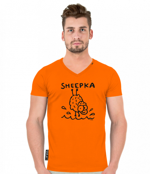 We make sustainable UAX clothing! - hand sewn in the Czech Republic uaxMen uaxAll productsT-shirtsT-SHIRTS SLIM FIT V NECKdesign 1077 - SHEEPKASIGNAL ORANGE