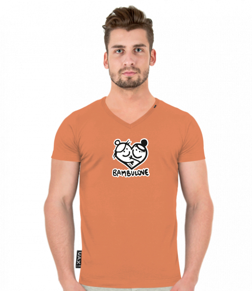 Men's T-shirt SLIM FIT with V nec for man with design 1079 BAMBULOVE in color MANDARIAN ORANGE