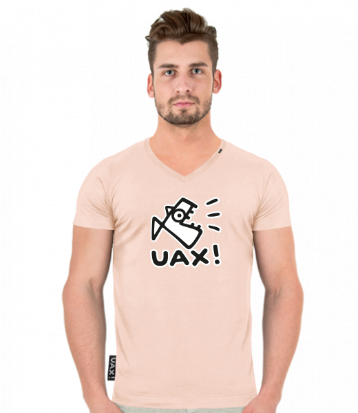 We make sustainable UAX clothing! - hand sewn in the Czech Republic uaxMen uaxAll productsT-shirtsT-SHIRTS SLIM FIT V NECKdesign 1086 - LOGO UAX!CAPPUCINO