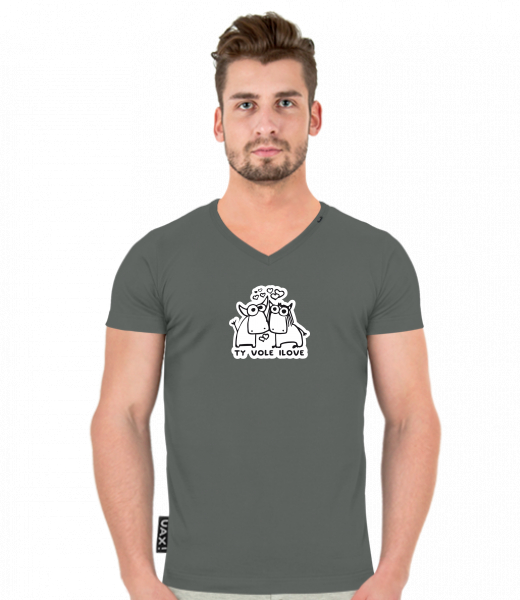 We make sustainable UAX clothing! - hand sewn in the Czech Republic uaxMen uaxAll productsT-shirtsT-SHIRTS SLIM FIT V NECKdesign 1089 - TY VOLE I LOVEDARK GRAY