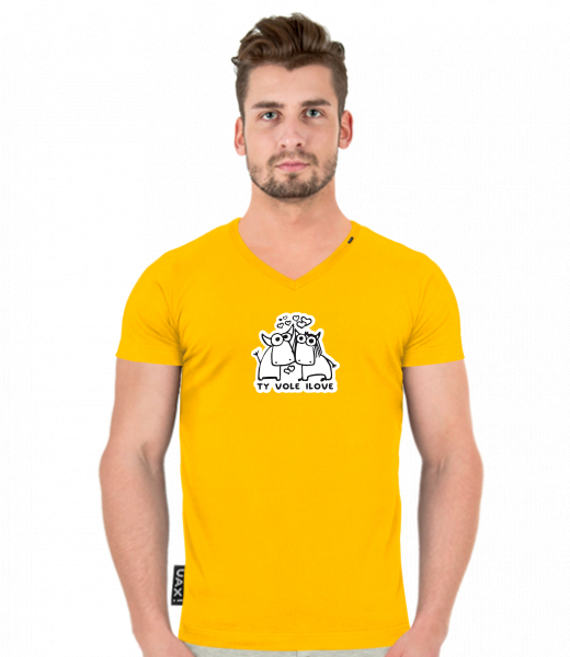 We make sustainable UAX clothing! - hand sewn in the Czech Republic uaxMen uaxAll productsT-shirtsT-SHIRTS SLIM FIT V NECKdesign 1089 - TY VOLE I LOVEGOLDEN CREAM