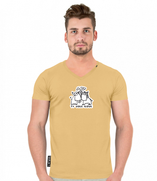 We make sustainable UAX clothing! - hand sewn in the Czech Republic uaxMen uaxAll productsT-shirtsT-SHIRTS SLIM FIT V NECKdesign 1089 - TY VOLE I LOVEMUSTARD
