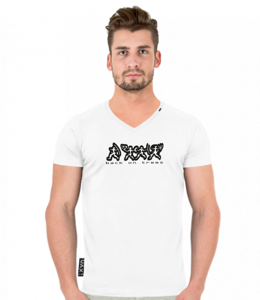 Men's T-shirt SLIM FIT with V nec for man with design 11 BACK ON TREES in color WHITE