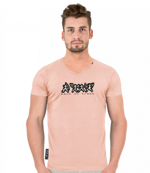 Men's T-shirt SLIM FIT with V nec for man with design 11 BACK ON TREES in color PEACH