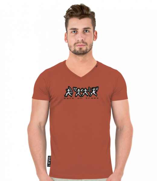 Men's T-shirt SLIM FIT with V nec for man with design 11 BACK ON TREES in color TERRA