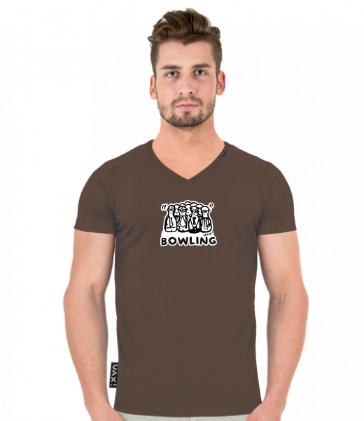 We make sustainable UAX clothing! - hand sewn in the Czech Republic uaxMen uaxAll productsT-shirtsT-SHIRTS SLIM FIT V NECKdesign 1104 - BOWLING 2CHESTNUT