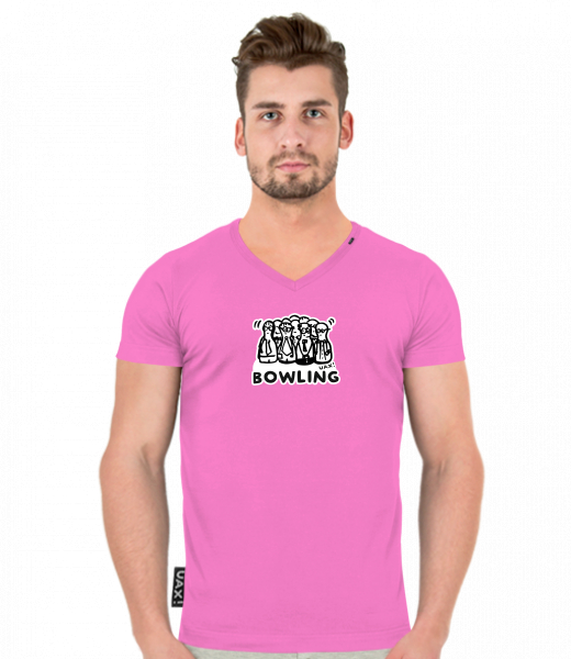 We make sustainable UAX clothing! - hand sewn in the Czech Republic uaxMen uaxAll productsT-shirtsT-SHIRTS SLIM FIT V NECKdesign 1104 - BOWLING 2CLASSIC PINK