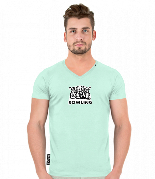 We make sustainable UAX clothing! - hand sewn in the Czech Republic uaxMen uaxAll productsT-shirtsT-SHIRTS SLIM FIT V NECKdesign 1104 - BOWLING 2MINT