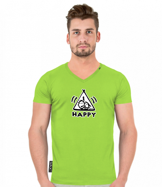 Men's T-shirt SLIM FIT with V nec for man with design 1113 HAPPY in color PARROT GREEN