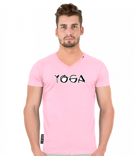 Men's T-shirt SLIM FIT with V nec for man with design 1115 YOGA in color BABY PINK