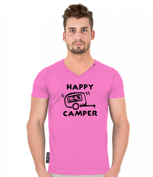 We make sustainable UAX clothing! - hand sewn in the Czech Republic uaxMen uaxAll productsT-shirtsT-SHIRTS SLIM FIT V NECKdesign 1116 - HAPPY CAMPERCLASSIC PINK
